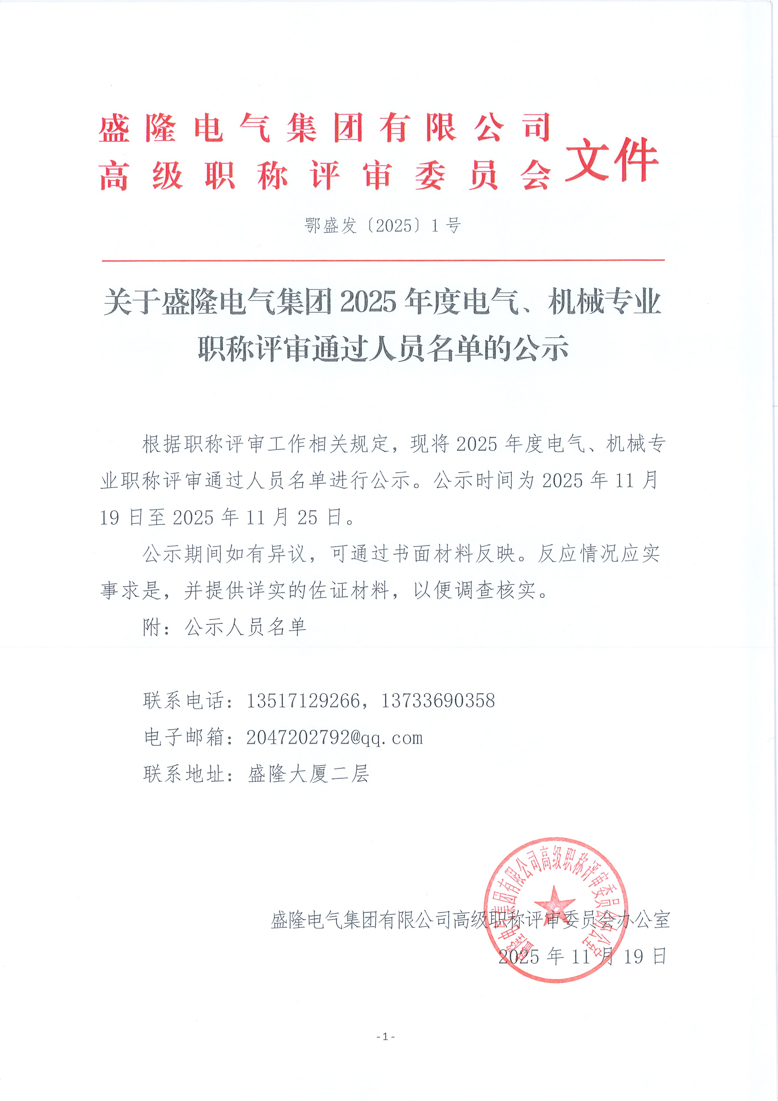關于盛隆電氣集團2025年度電氣、機械專業職...